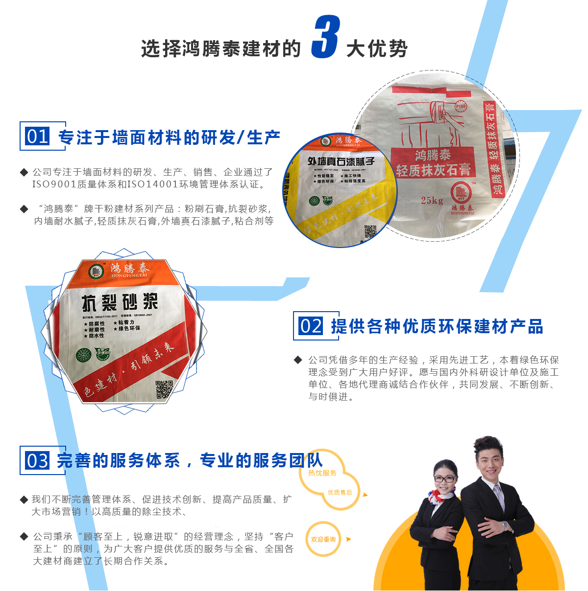 安徽鴻騰泰環保建材有限公司,坐落于中國科技明珠城合肥市。是一家專業建筑節能企業,專注于建筑節能產品的研發與生產,系統材料的集成及保溫工程的施工。主要銷售安徽浙江|江蘇地區的輕質抹灰石膏,乳膠漆、膩子和水包水涂料以及安徽彈性膩子,質量上乘的產品,一直深受著社會各界的好評。它是集科研、生產施工、銷售為一體的實業公司,且是華東地區涂料行業知名企業。我們一直致力于建筑用抹灰石膏保溫砂漿的開發,生產及推廣事業,多年的專業發展造就了成熟的品質,積累了豐富的經驗,均屬技術先進、質量上乘的產品,一直深受著社會各界的好評。我公司生產基地擁有寬敞、現代的標準廠房,現有有生產用房10000平米同時擁有2條全自動高速干粉混合生產線和微電腦灌裝機以及2套先進...